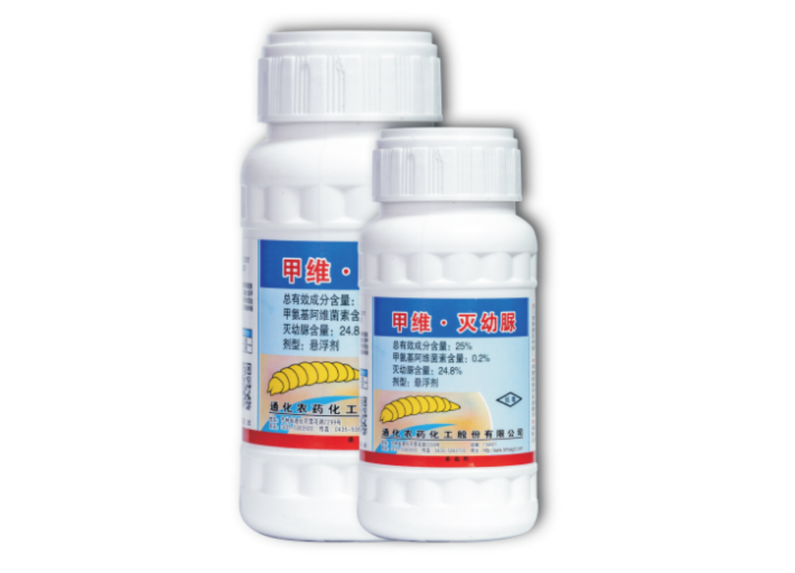 本品由甲氨基阿維菌素苯甲酸鹽與滅幼脲復(fù)配而成。甲氨基阿維菌素苯甲酸鹽作用機(jī)理是擾亂害蟲神經(jīng)傳導(dǎo)而使身體麻痹死亡。滅幼脲為苯甲酰脲類昆蟲幾丁質(zhì)合成抑制劑,通過抑制昆蟲幾丁質(zhì)的合成從而導(dǎo)致昆蟲不能正常蛻皮而死。以胃毒為主兼觸殺作用,可用于防治甘藍(lán)小菜蛾和楊樹美國(guó)白蛾。本品外觀為乳白色懸浮液體,無刺激性氣味。