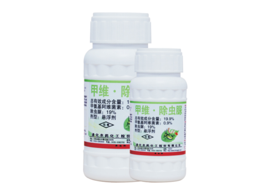 本品由甲氨基阿維菌素苯甲酸鹽與除蟲脲復(fù)配而成。甲氨基阿維菌素苯甲酸鹽作用機理是擾亂害蟲神經(jīng)傳導(dǎo)而使身體麻痹死亡。除蟲脲具有胃毒、觸殺及兼具殺卵作用,能抑制昆蟲表皮幾丁質(zhì)的合成,使幼蟲在蛻皮時不能形成新表皮而死。以胃毒為主兼觸殺作用,可用于防治蘋果金紋細蛾和楊樹美國白蛾。本品外觀為類白色懸浮液體,無刺激性氣味。